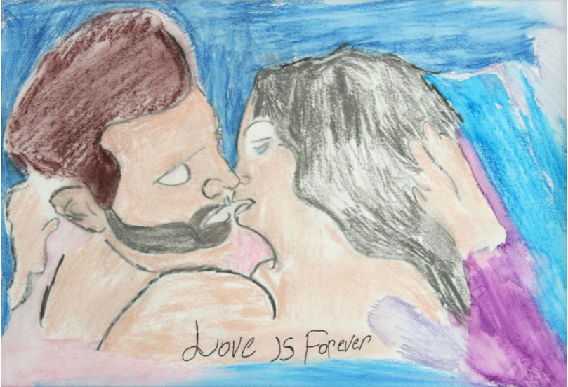 Love Is Forever is a piece about my girlfriend and I. It’s really special to me, and the significance goes really deep for me. I also have a photograph from my phone that I turned into a drawing. I blew it up on the computer and drew it that way. I used watercolor and charcoal.
