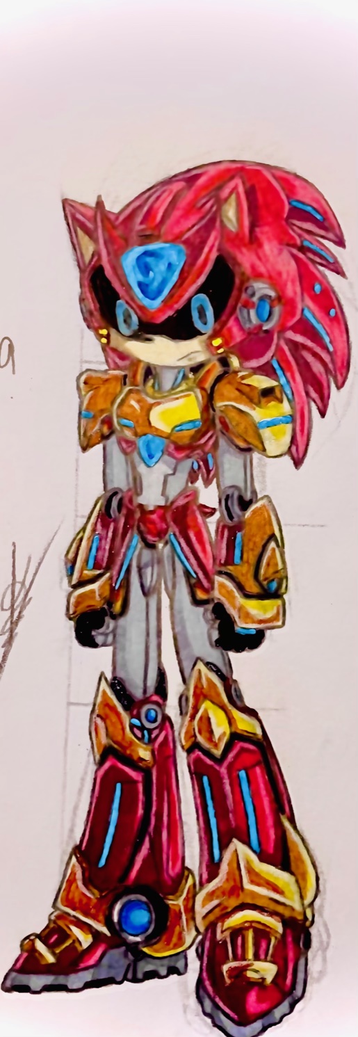 Sanoz X the Hedgehog is a biological android. He can teleport, has super-strength, and can warp through reality with the “warp-rings”. He uses his rocket boots to fly, and the rings he uses help to channel his many powers. He is 15 years old, goes to Dunbar High, but his home city is so far away that he must go to school by train.