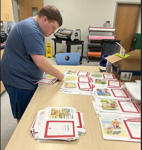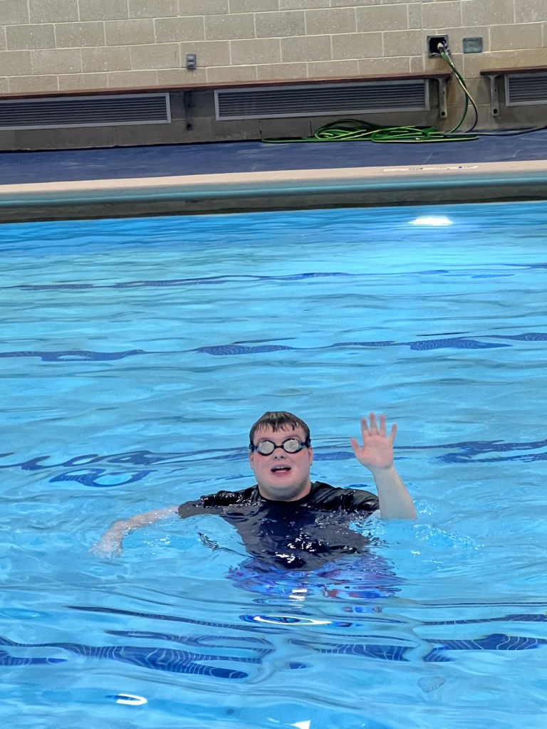 My favorite part is swimming on Monday and Wednesday with my class, and doing my job. I work at an elementary school with the Kindergarteners and in the cafeteria.