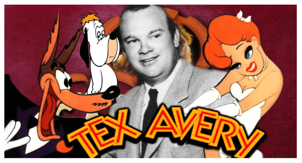 “Avery had developed a distinct, signature style at Warner Bros. Studio, which had breakneck pacing, outlandish, over-the-top acting from his characters, and seemingly nonstop jokes and gags. Avery’s style of directing encouraged animators to stretch the boundaries of the medium to do things in a cartoon that could not be done in the world of a live-action film. An often-quoted line about Avery’s cartoons was, ‘In a cartoon, you can do anything.’ He also performed a great deal of voice work in his cartoons, usually throwaway bits.” (Source: Wikipedia)