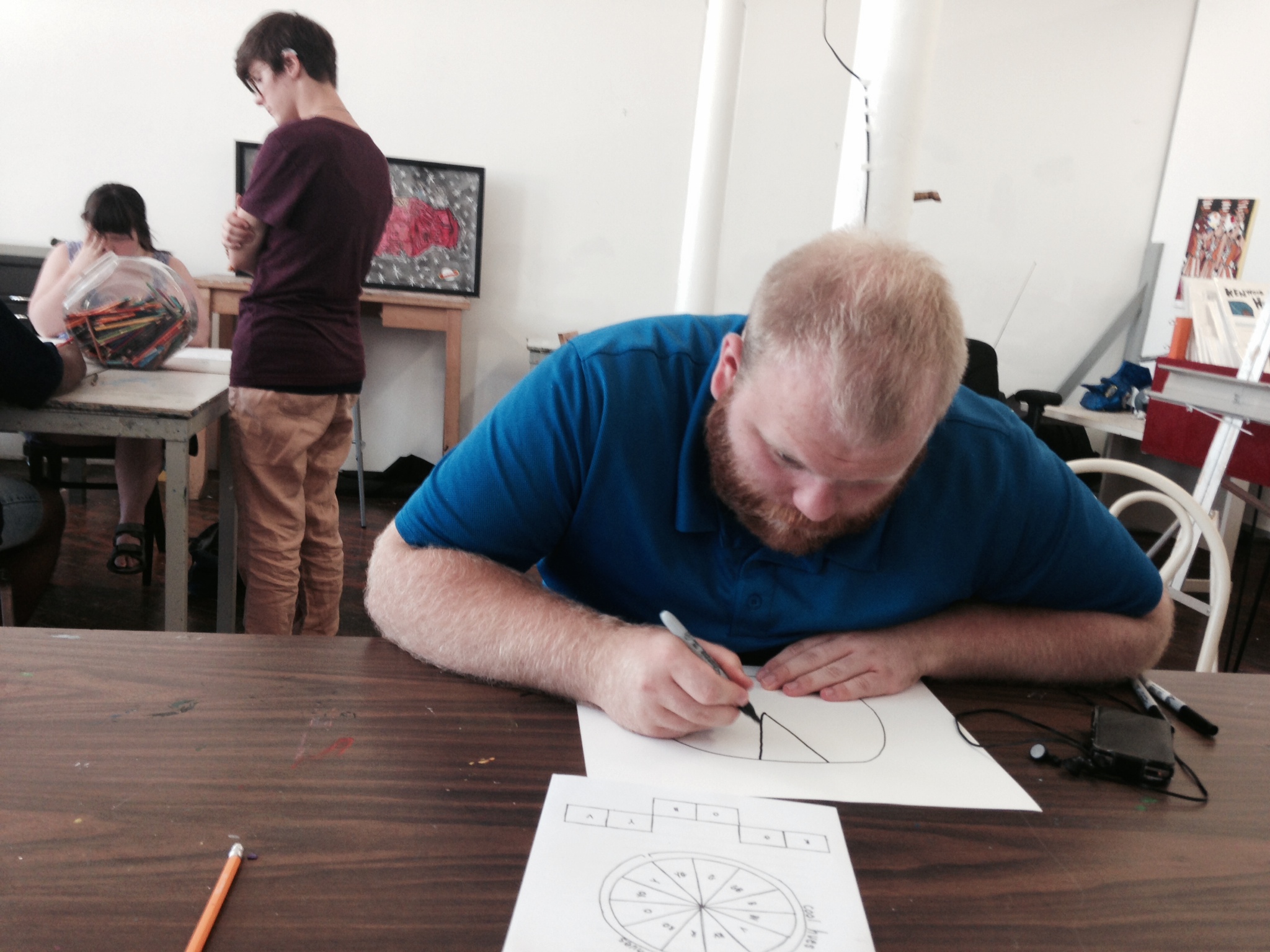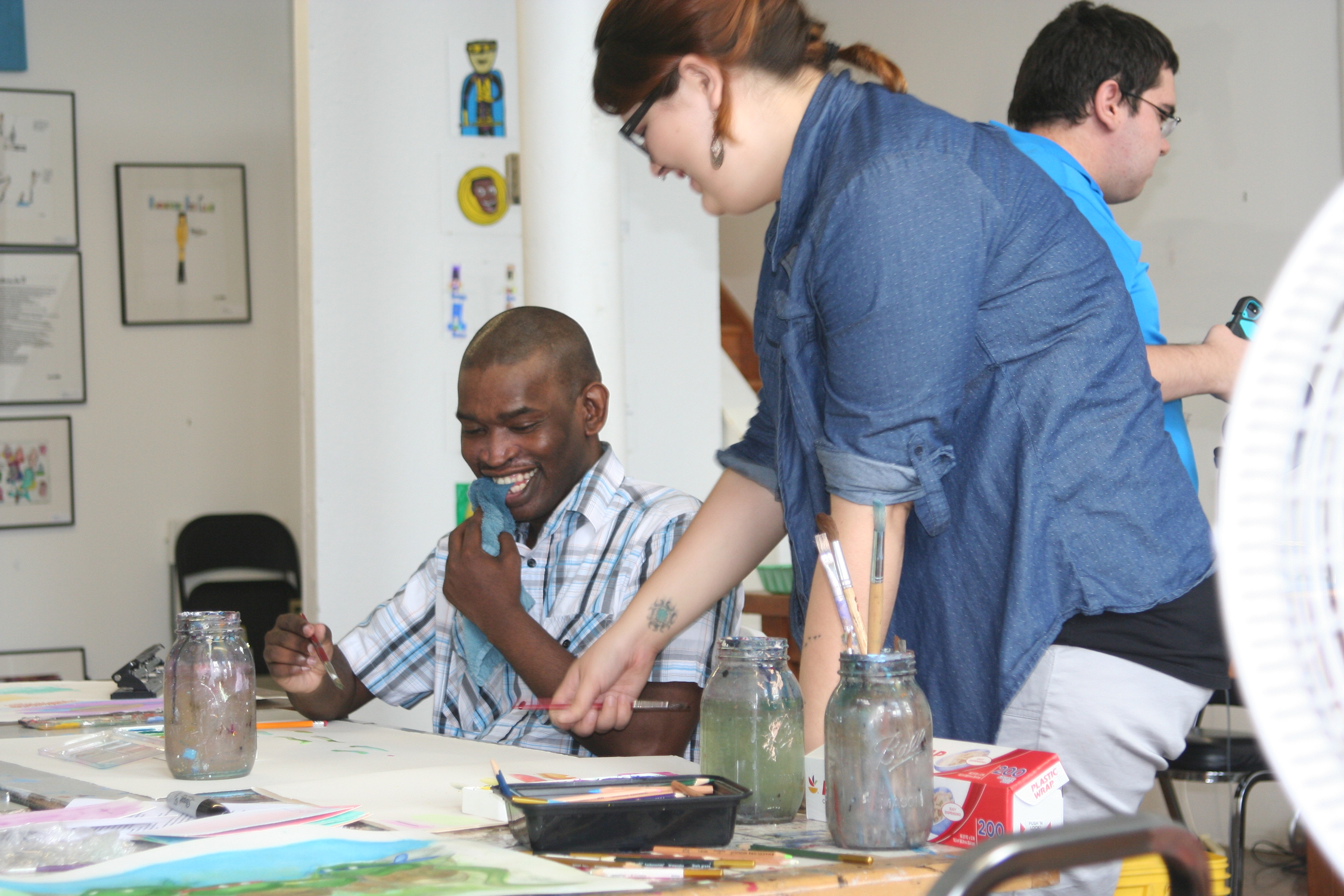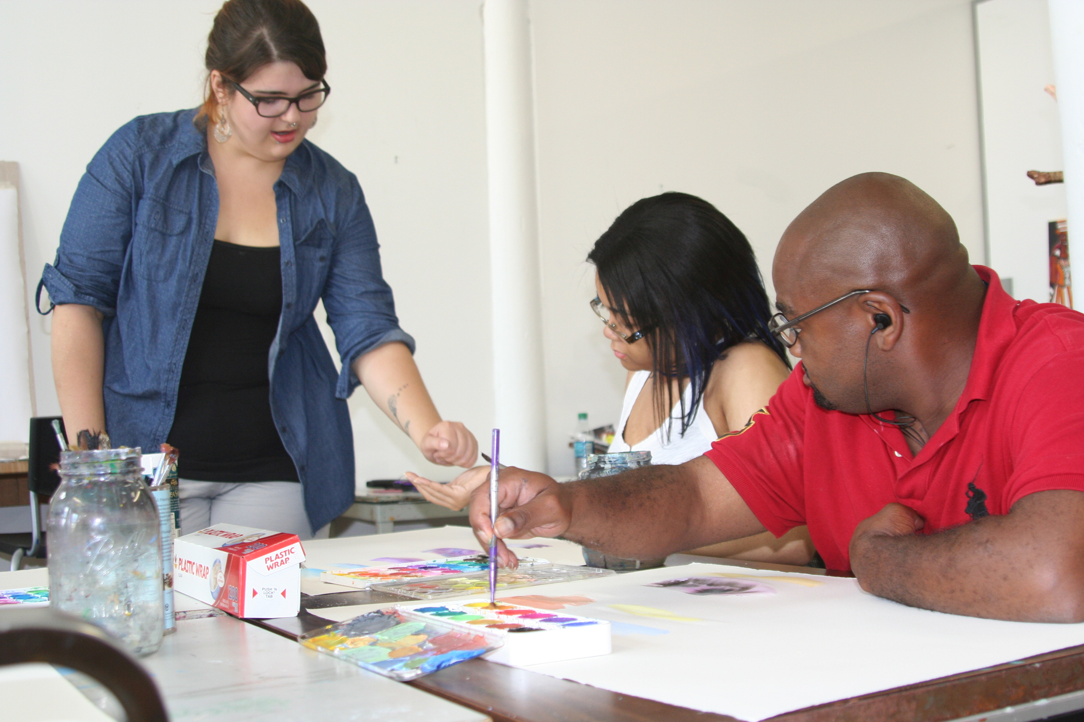 Bradley believes Make Studio has broadened his horizons. Speaking about his growth, he says, “Art is a gateway that allows me to try other things like sculpture and 3D design.” When he started here, he was using pencil, watercolor, and sharpie. After a little while, he moved into using acrylics, then sculptural design. He even writes poetry from time-to-time. He’s still working on processing and stream-lining his many creative ideas, trying to make everything connect and be relevant to his overall message.